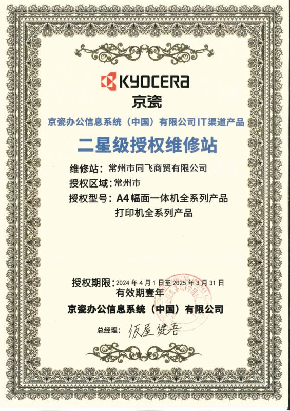 公司取得了日本京瓷復印機、打印機,映美針式打印機、天威耗材、安興紙業(yè)等眾多知名品牌常州地區(qū)代理權(quán)。